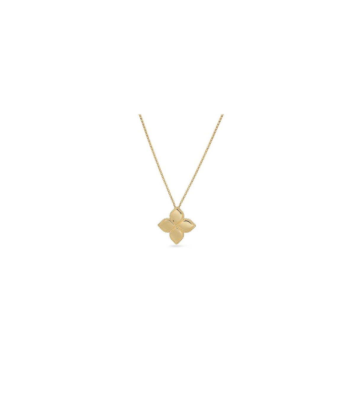 Roberto Coin Princess Flower pendant in 18ct yellow gold with floral motif. Large version.