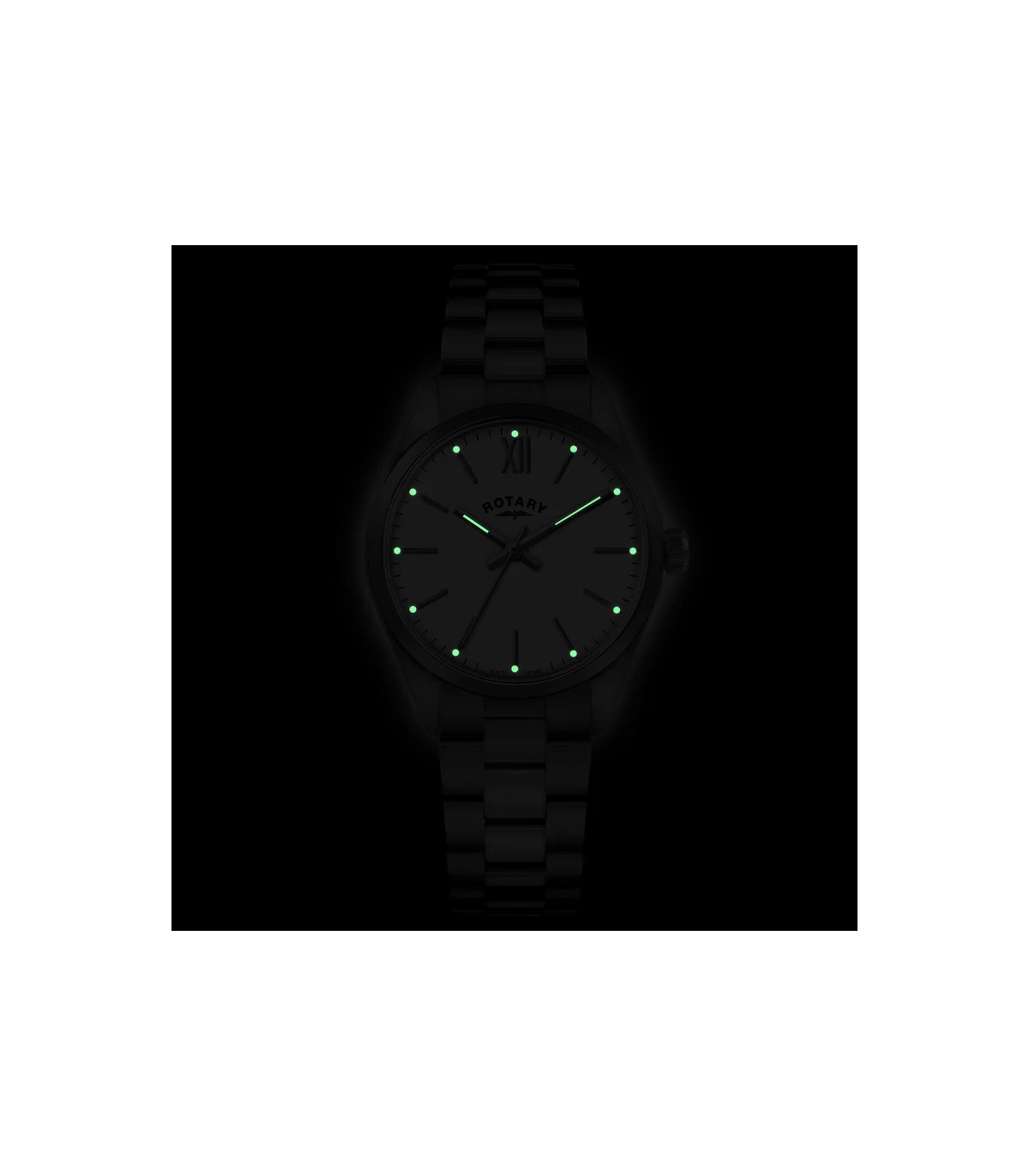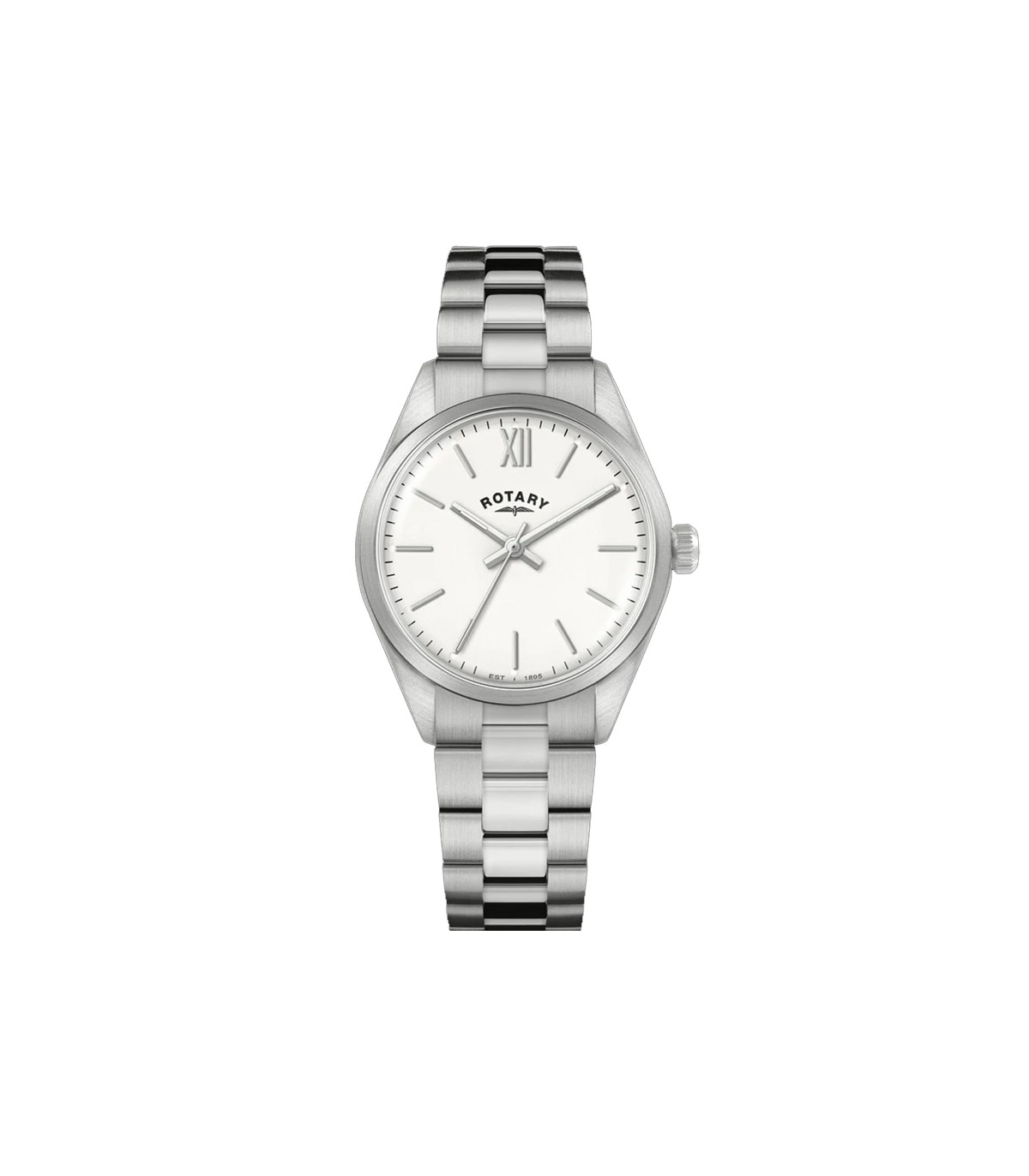 Rotary Heritage with a white face, sapphire crystal, stainless steel case and bracelet with a deployment buckle.