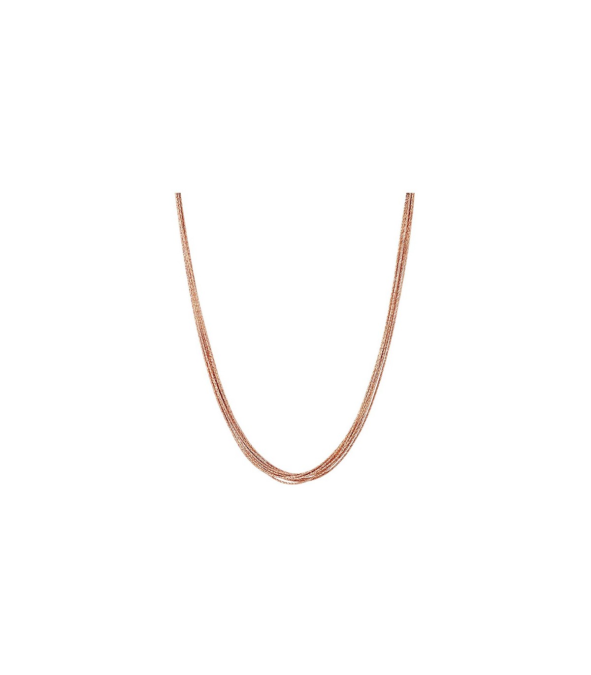 | Our Essentials 18kt Rose Gold Vermeil Silk 10 Row Necklace 45cm will take you from day to night in an instant. Designed to complement any outfit our Essentials necklace boasts impressive ten rows for a fuller statement look, and its unique diamond cut finish ensures you will shimmer in every light, no matter what the occasion. It is perfect for understated glamour when worn alone or team with other lengths in the collection to create a standout piece. |