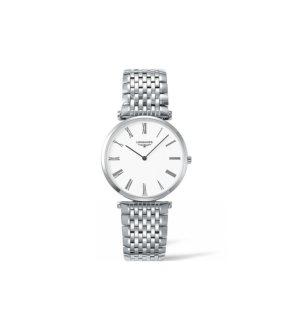 La Grande Classique de Longines with a white face and stainless steel bracelet