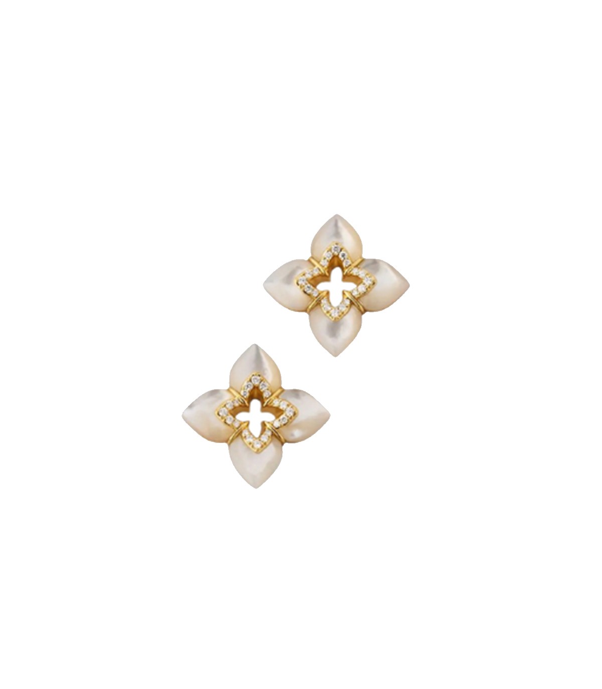 Roberto Coin Venetian Princess earrings made in 18ct yellow gold diamonds and mother of pearl.