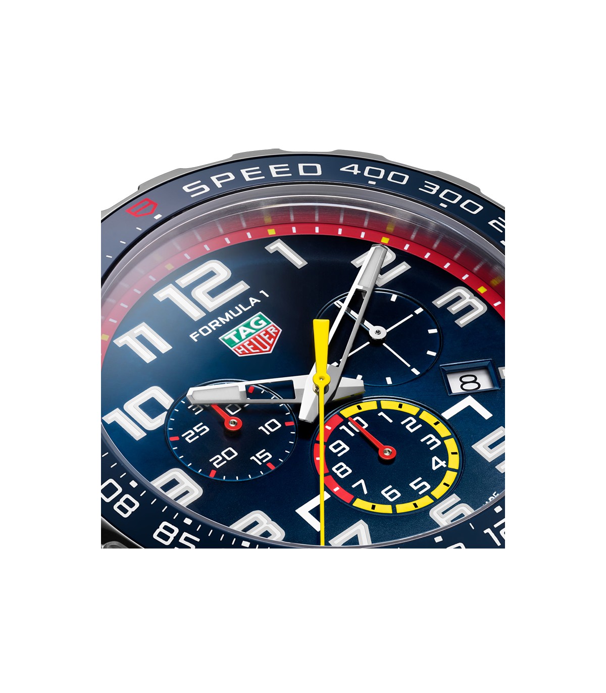 Part of a unique collaboration, the Tag Heuer Formula 1 Red Bull Racing Special Edition is ready to roar ahead and set the pace. This dynamic chronograph is a fitting tribute to two high-energy leaders in their fields and a real challenger.